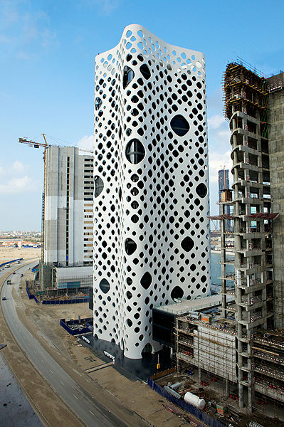 På andra plats 2009 kom O-14 i Dubai. Det är en märklig skapelse som på bilderna nästan ser ut att vara gjord i vitlackad plåt med olika stora hål, som mjukt böjts i husform. Fast den är tydligen byggd i betong. Jag såg den inte när jag var där, fast den på kartan ser ut att ligga ganske nära Burj Dubai.